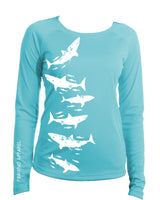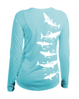 The white sharks in our design were photographed off Guadalupe, Mexico.