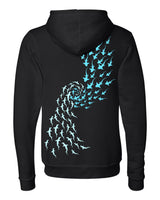 Sharknado (yes we are intentionally riffing off the hilariously silly movie), is inspired by the aggregations of sharks in the Caribbean. It is also a design we created to honor work done towards shark research and documentation, by dedicated folks such as our ambassadors, Jillian Morris Brake and Duncan Brake of Sharks4Kids and OceanicAllastars. The design consists of hammerheads and nurse sharks snapped in the Caribbean.